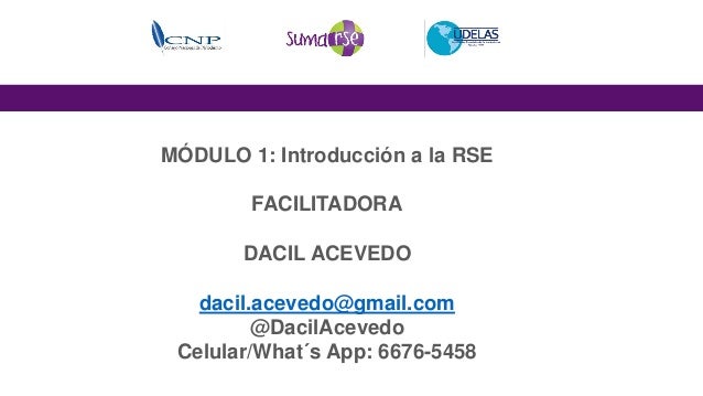 9. 9. MÓDULO 1: Introducción a la RSE FACILITADORA DACIL ACEVEDO dacil.acevedo@gmail.com @DacilAcevedo Celular/What´s App: 6676-5458