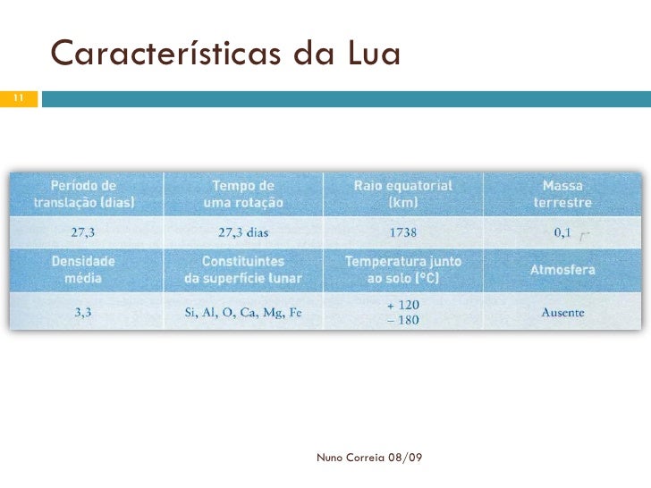 11. 11. Características da Lua 11 Nuno Correia 08/09