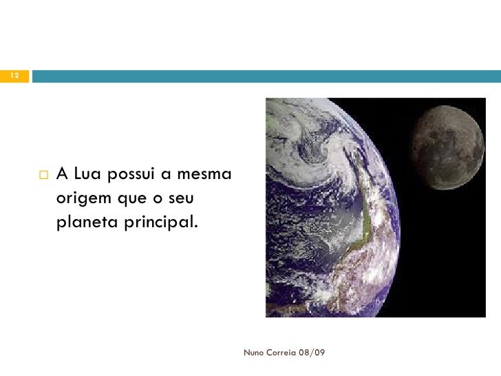 12. 12. 12  A Lua possui a mesma origem que o seu planeta principal. Nuno Correia 08/09