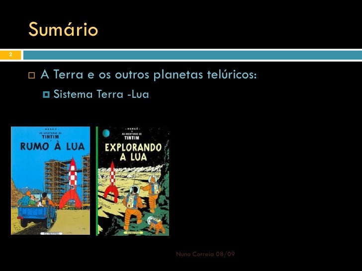2. 2. Sumário 2  A Terra e os outros planetas telúricos:  Sistema Terra -Lua Nuno Correia 08/09