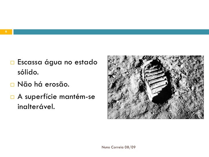 6. 6. 6  Escassa água no estado sólido.  Não há erosão.  A superfície mantém-se inalterável. Nuno Correia 08/09