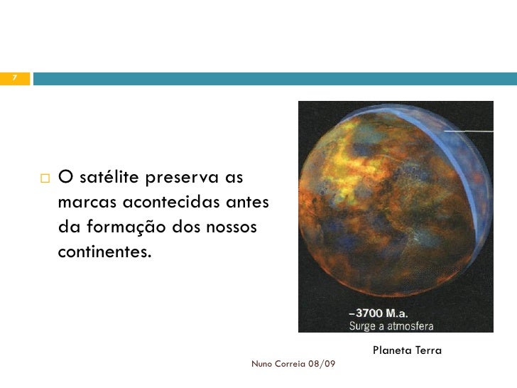 7. 7. 7  O satélite preserva as marcas acontecidas antes da formação dos nossos continentes. Planeta Terra Nuno Correia 08/09