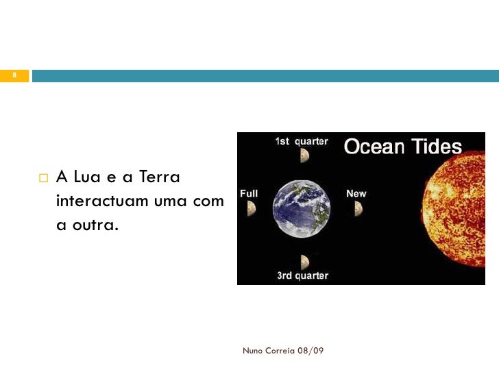 8. 8. 8  A Lua e a Terra interactuam uma com a outra. Nuno Correia 08/09