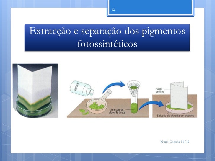 11. 11. 12Extracção e separação dos pigmentos fotossintéticos Nuno Correia 11/12