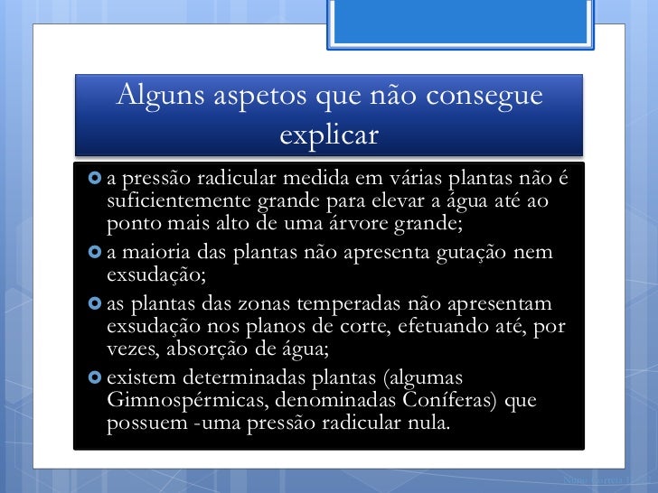 Hipótese da pressão radicularEsta hipótese é suportada pela observação de fenómenos de Gutação e                          ...