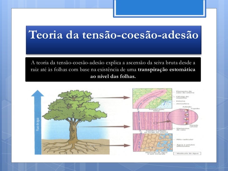 Teoria da tensão-coesão-adesãoA teoria da tensão-coesão-adesão explica a ascensão da seiva bruta desde araiz até às folhas...