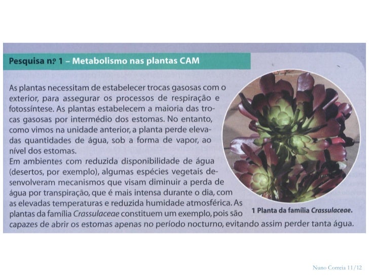 33. 33. Transporte no floema Os Afídeos ou Pulgões são insetos que parasitam as plantas. Por meio de seus aparelhos bucais, formados por estiletes compridos, penetram nas partes tenras do vegetal e estabelecem uma comunicação com o líber, passando a extrair a seiva elaborada. Cortes feitos nessas regiões e vistos ao microscópio mostram que os estiletes bucais estão localizados no tecido liberiano. Nuno Correia 11/12