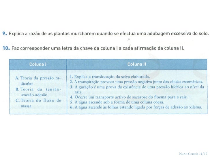 15. 15. A seiva bruta é transportada pelo xilema Nuno Correia 11/12