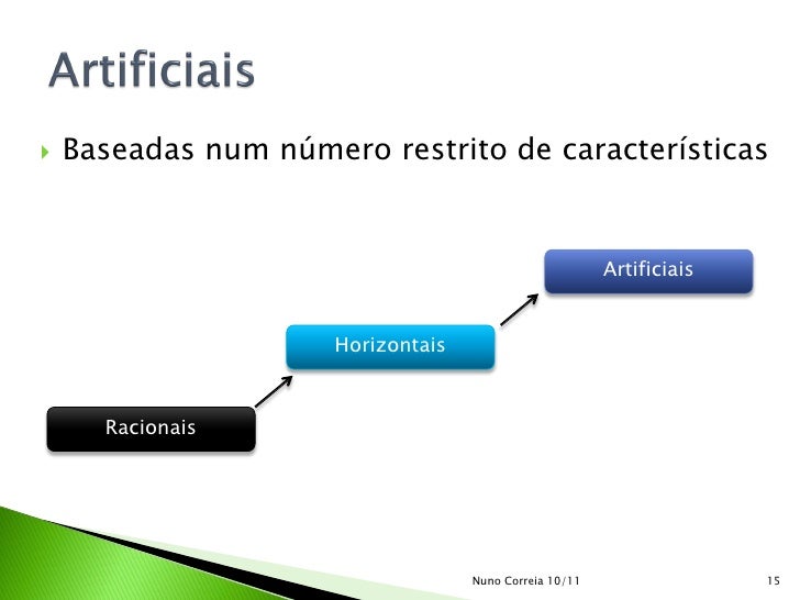15. 15.  Baseadas num número restrito de características Artificiais Horizontais Racionais Nuno Correia 10/11 15