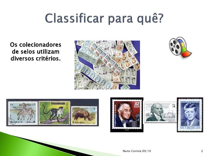 2. 2. Os colecionadoresde selos utilizamdiversos critérios. Nuno Correia 09/10 2