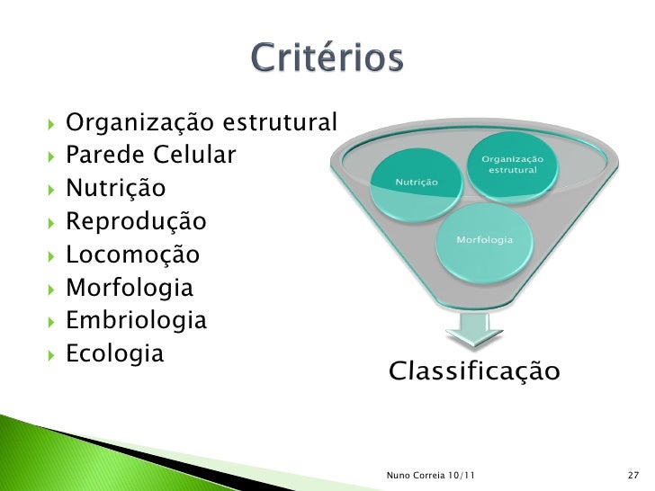 27. 27.  Organização estrutural Parede Celular Nutrição Reprodução Locomoção Morfologia Embriologia Ecologia Nuno Correia 10/11 27