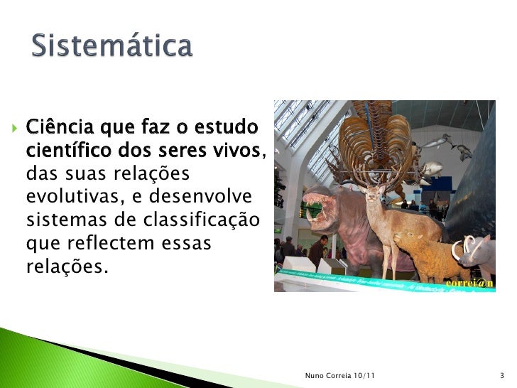 3. 3.  Ciência que faz o estudo científico dos seres vivos, das suas relações evolutivas, e desenvolve sistemas de classificação que reflectem essas relações. Nuno Correia 10/11 3