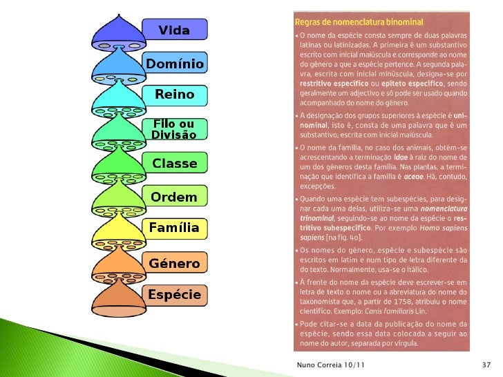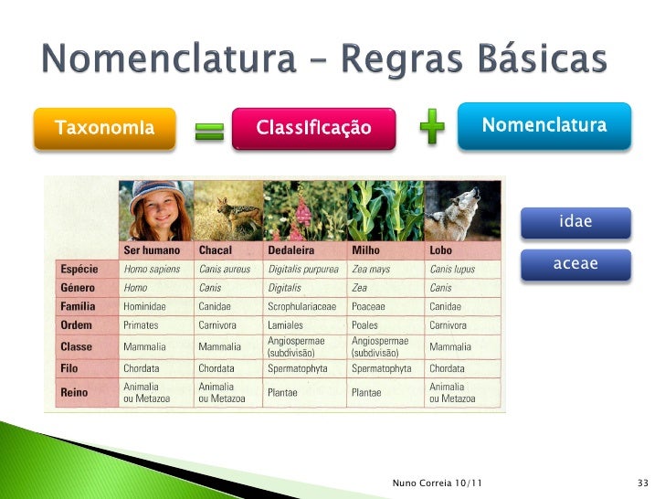 33. 33. Taxonomia Classificação Nomenclatura idae aceae Nuno Correia 10/11 33