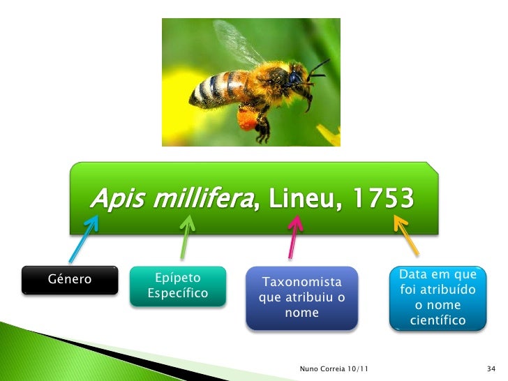 34. 34. Género Epípeto Data em que Taxonomista Específico foi atribuído que atribuiu o o nome nome científico Nuno Correia 10/11 34