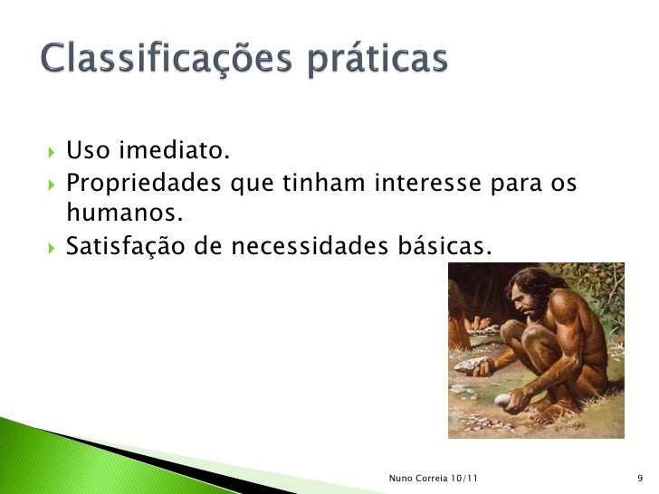 9. 9.  Uso imediato. Propriedades que tinham interesse para os humanos. Satisfação de necessidades básicas. Nuno Correia 10/11 9