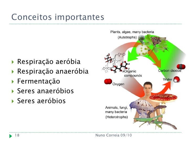 18. 18. Conceitos importantes  Respiração aeróbia  Respiração anaeróbia  Fermentação  Seres anaeróbios  Seres aeróbios 18 Nuno Correia 09/10