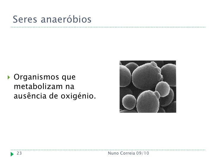 23. 23. Seres anaeróbios  Organismos que metabolizam na ausência de oxigénio. 23 Nuno Correia 09/10