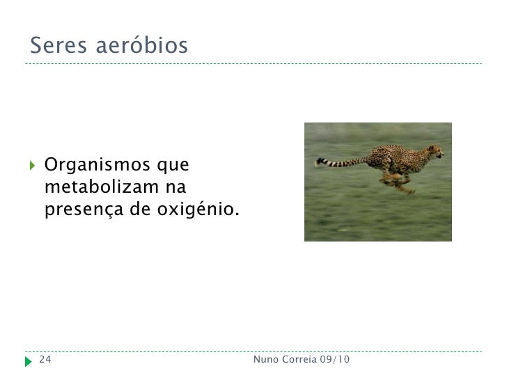 24. 24. Seres aeróbios  Organismos que metabolizam na presença de oxigénio. 24 Nuno Correia 09/10