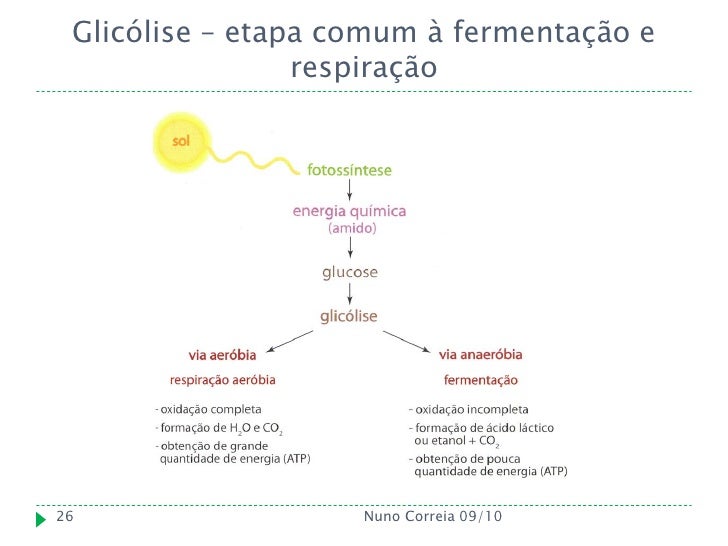 26. 26. Glicólise – etapa comum à fermentação e respiração 26 Nuno Correia 09/10