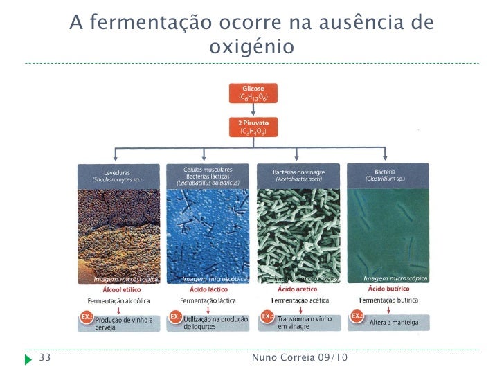 33. 33. A fermentação ocorre na ausência de oxigénio 33 Nuno Correia 09/10