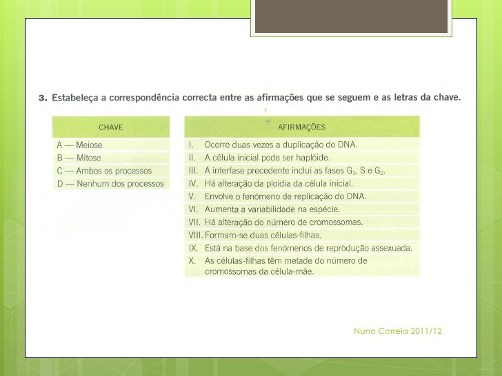 42. 42. Mitose e Meiose – aspetoscomparativos Nuno Correia 2011/12