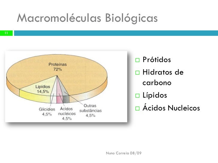 11. 11. Macromoléculas Biológicas 11 Prótidos  Hidratos de  carbono Lípidos  Ácidos Nucleicos  Nuno Correia 08/09