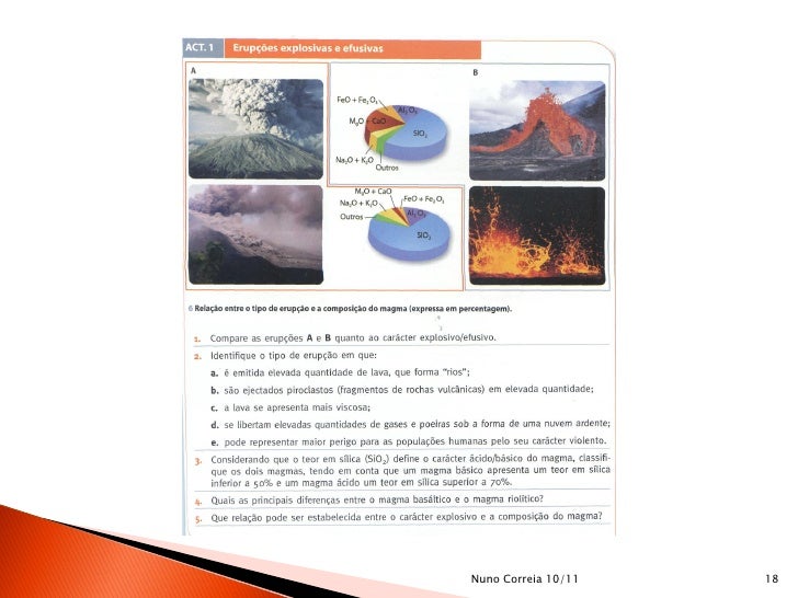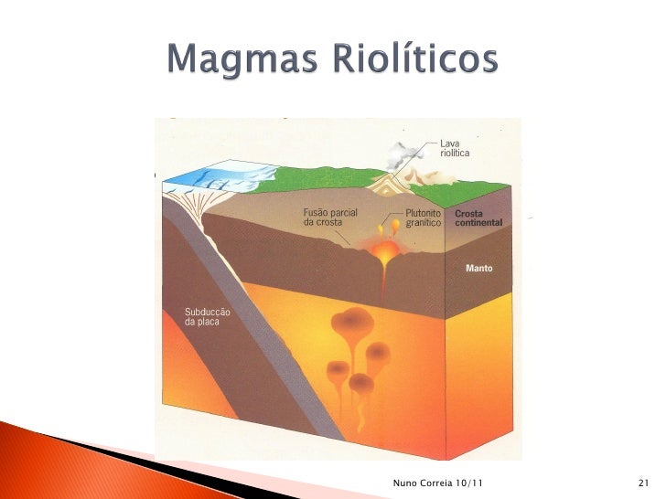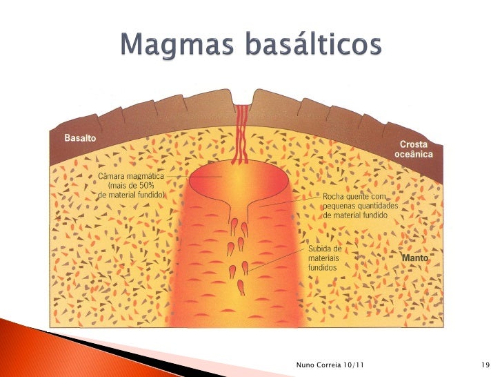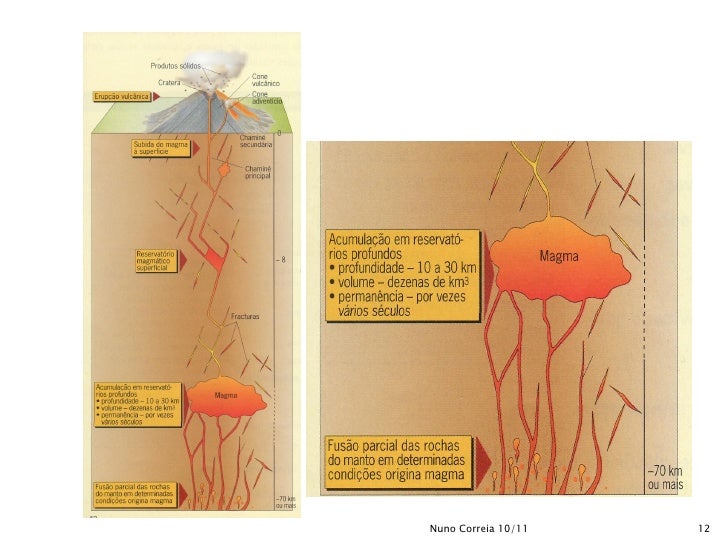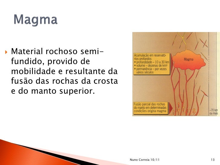 12. 12.  Material rochoso semi- fundido, provido de mobilidade e resultante da fusão das rochas da crosta e do manto superior. Nuno Correia 10/11 13