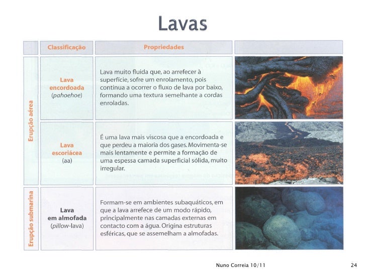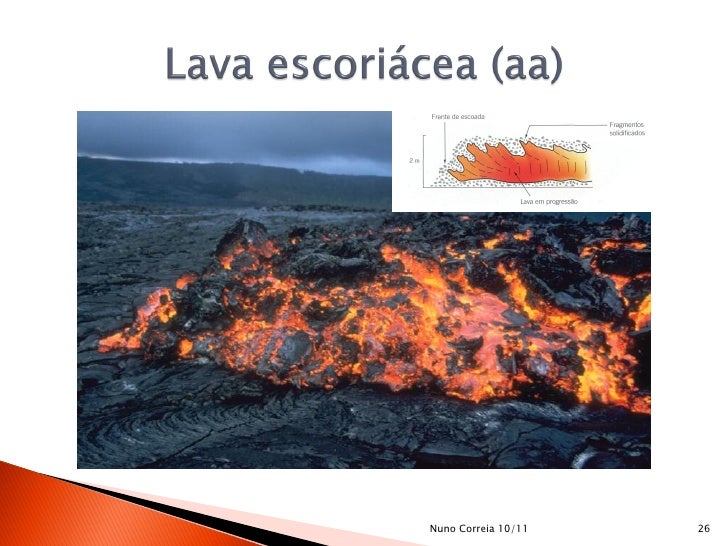 15. 15.  Matéria magmática fundida expelida pelos vulcões. A diferença da lava relativamente ao magma reside no facto de ter sofrido importante desgaseificação. Nuno Correia 10/11 16