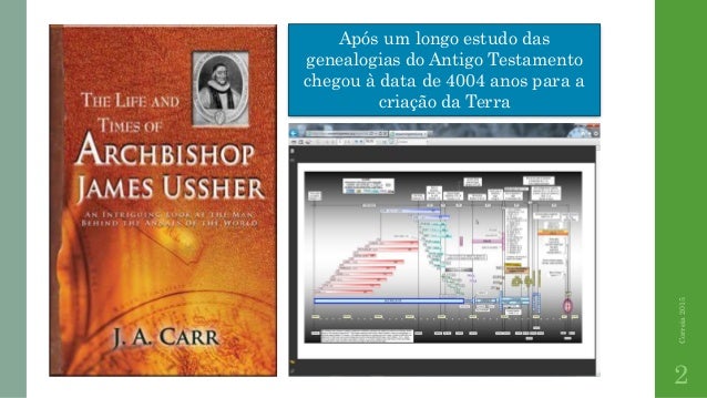 2. 2. Correia2015 2 Após um longo estudo das genealogias do Antigo Testamento chegou à data de 4004 anos para a criação da Terra