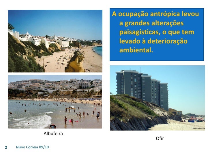 2. 2. A ocupação antrópica levou a grandes alterações paisagísticas, o que tem levado à deterioração ambiental. Albufeira Ofir 2 Nuno Correia 09/10