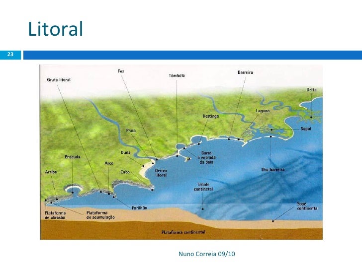 3. 3. 3  Cerca de dois terços da superfície da Terra são ocupados pelo mar.  A energia das ondas, das correntes e das marés é um importante factor modelador. Cabo Mondego Nuno Correia 09/10