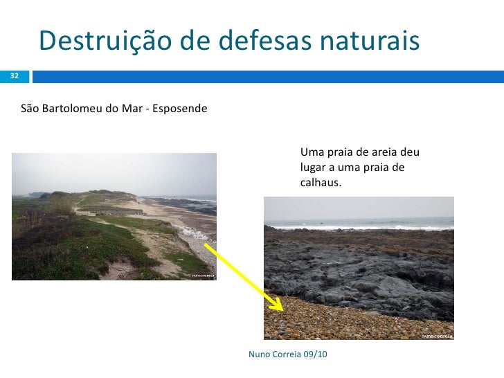 32. 32. Destruição de defesas naturais 32 São Bartolomeu do Mar - Esposende Uma praia de areia deu lugar a uma praia de calhaus. Nuno Correia 09/10