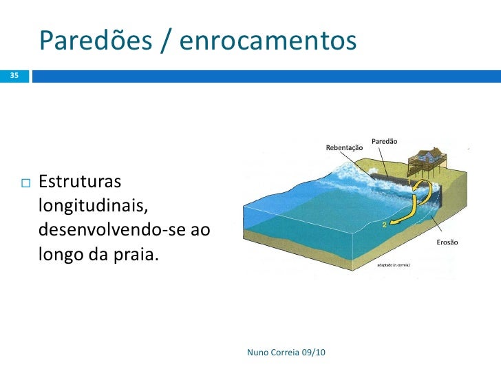 35. 35. Paredões / enrocamentos 35  Estruturas longitudinais, desenvolvendo-se ao longo da praia. Nuno Correia 09/10