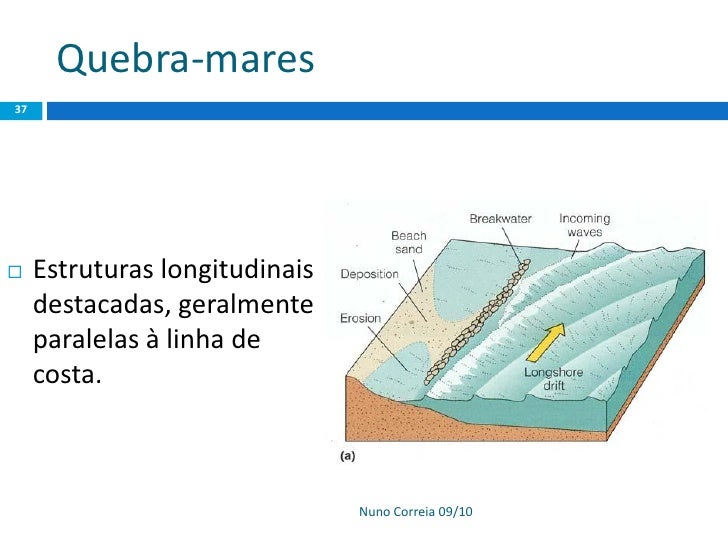 37. 37. Quebra-mares 37  Estruturas longitudinais destacadas, geralmente paralelas à linha de costa. Nuno Correia 09/10