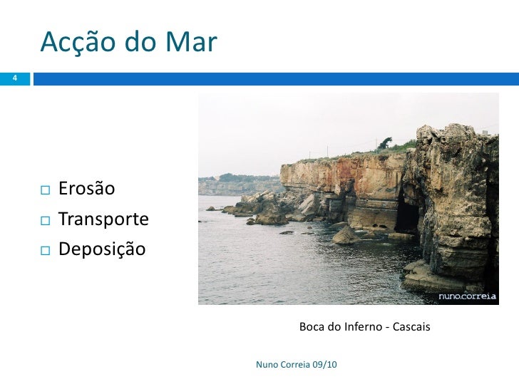 4. 4. Acção do Mar 4  Erosão  Transporte  Deposição Boca do Inferno - Cascais Nuno Correia 09/10