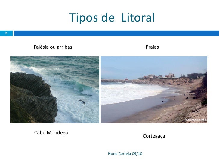 6. 6. Tipos de Litoral 6 Falésia ou arribas Praias Cabo Mondego Cortegaça Nuno Correia 09/10
