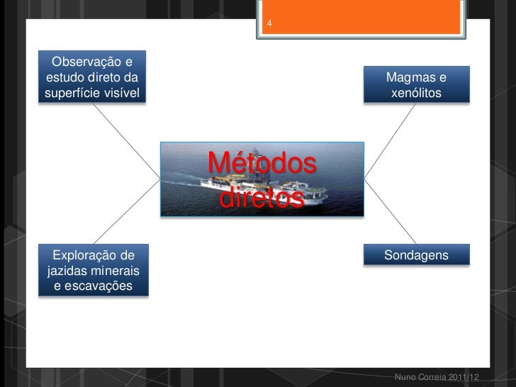 4. 4. 4 Observação eestudo direto da Magmas esuperfície visível xenólitos Métodos diretos Exploração de Sondagensjazidas minerais e escavações Nuno Correia 2011/12