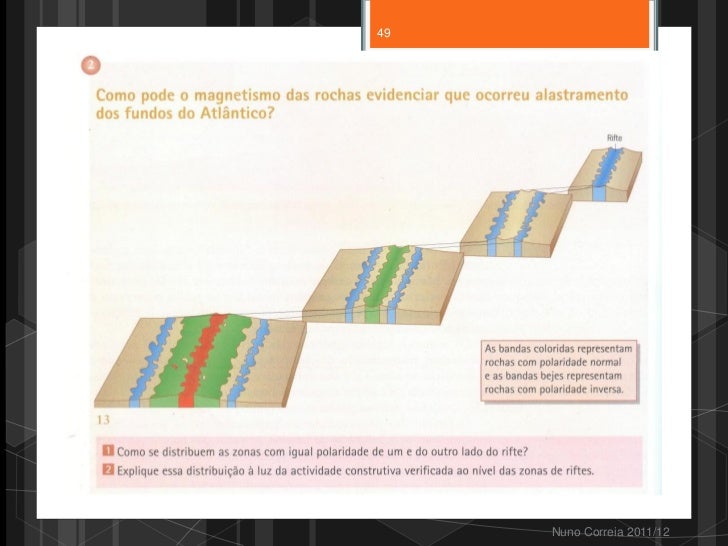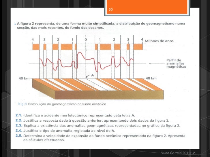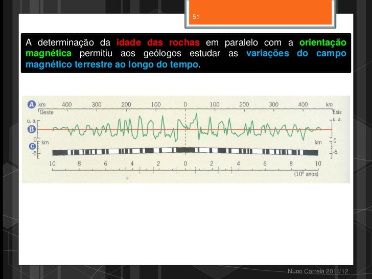 51. 51. 51A determinação da idade das rochas em paralelo com a orientaçãomagnética permitiu aos geólogos estudar as variações do campomagnético terrestre ao longo do tempo. Nuno Correia 2011/12