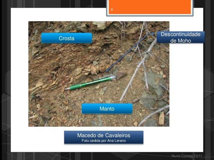 9. 9. 9 DescontinuidadeCrosta de Moho Manto Macedo de Cavaleiros Foto cedida por Ana Lereno Nuno Correia 10/11