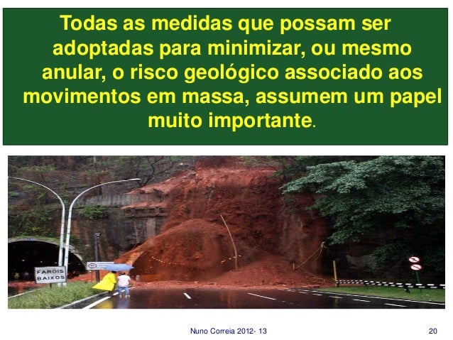 20. 20. Nuno Correia 2012- 13 20Todas as medidas que possam seradoptadas para minimizar, ou mesmoanular, o risco geológico associado aosmovimentos em massa, assumem um papelmuito importante.