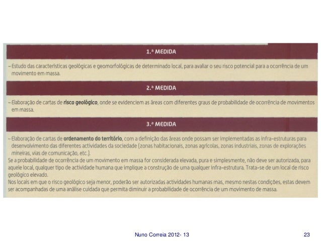 Nuno Correia 2012- 13 20Todas as medidas que possam seradoptadas para minimizar, ou mesmoanular, o risco geológico associa...