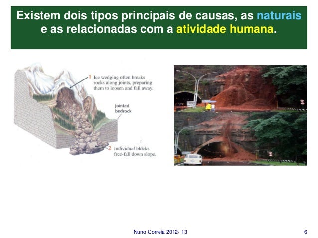 6. 6. Nuno Correia 2012- 13 6Existem dois tipos principais de causas, as naturaise as relacionadas com a atividade humana.