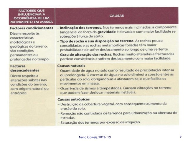 Nuno Correia 2012- 13 6Existem dois tipos principais de causas, as naturaise as relacionadas com a atividade humana.