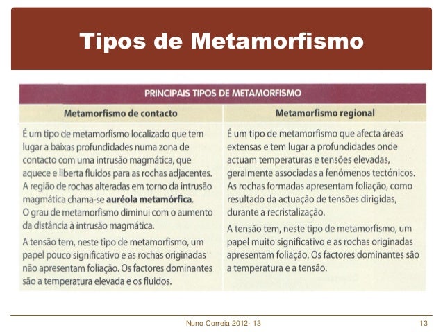 13. 13. Tipos de Metamorfismo Nuno Correia 2012- 13 13