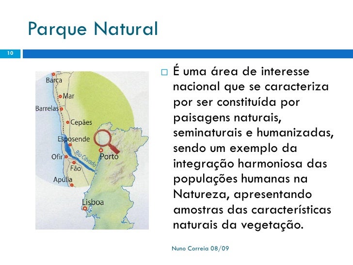 10. 10. Parque Natural 10  É uma área de interesse nacional que se caracteriza por ser constituída por paisagens naturais, seminaturais e humanizadas, sendo um exemplo da integração harmoniosa das populações humanas na Natureza, apresentando amostras das características naturais da vegetação. Nuno Correia 08/09