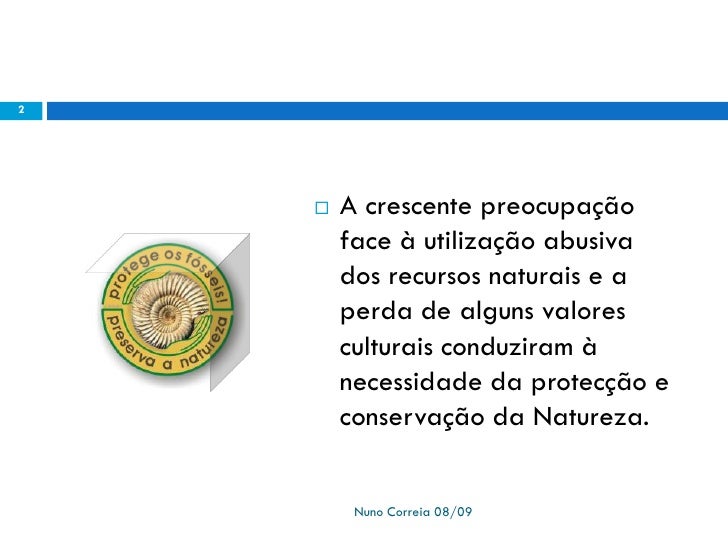 2. 2. 2  A crescente preocupação face à utilização abusiva dos recursos naturais e a perda de alguns valores culturais conduziram à necessidade da protecção e conservação da Natureza. Nuno Correia 08/09