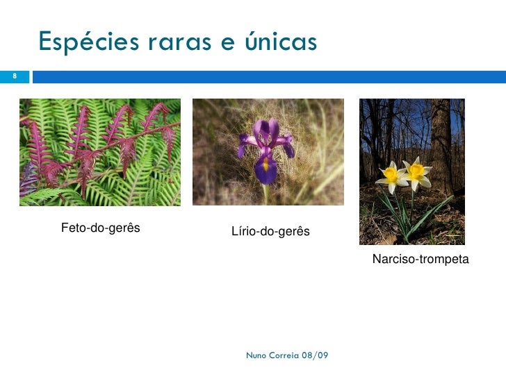 8. 8. Espécies raras e únicas 8 Feto-do-gerês Lírio-do-gerês Narciso-trompeta Nuno Correia 08/09
