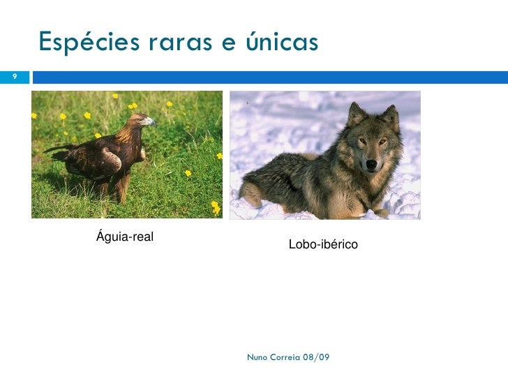 9. 9. Espécies raras e únicas 9 Águia-real Lobo-ibérico Nuno Correia 08/09