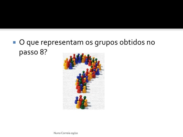 17. 17.  O que representam os grupos obtidos no passo 8? Nuno Correia 09/10