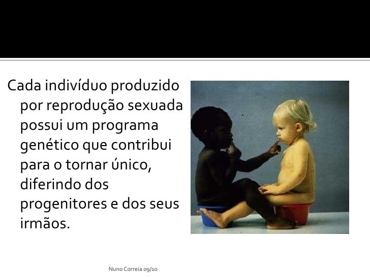 25. 25. Cada indivíduo produzido por reprodução sexuada possui um programa genético que contribui para o tornar único, diferindo dos progenitores e dos seus irmãos. Nuno Correia 09/10